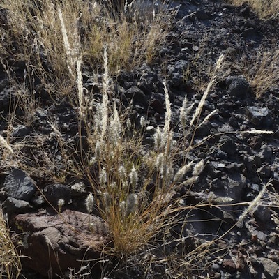 Description: This bunchgrass tends to remain quite small. Leaves are hairy. Inflorescences are a fluffy gray.