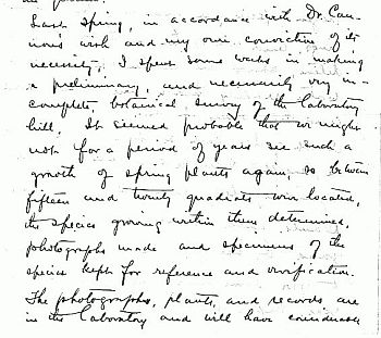 Tumamoc Hill has the world's oldest permanent plant ecology study plots. The truth is, we are not even 100% sure whether they date from 1905 or 1906! A handwritten letter from Volney Spalding, who established them, dates from 1905. He notifies the laboratory's administration of his new research direction, and recommends that they be studied for a very long time. We have Spalding's field notes from 1906. But his field notes from 1905 are lost, so we cannot be sure if the plots he worked on in 1905 were the same as those he worked on in 1906. In 1906, there were 19 plots, 18 of them squares, each 10 meters on a side. Today, over a century later, we are still collecting good data from nine of Spalding's plots. The others have been lost to indifference and ignorance, mostly in the 1970s during the construction of West Anklam Road along our northeastern border. In 2012, with support from the National Science Foundation, the US Geological Survey, and the National Park Service, the old Spalding plots were remapped using such tools as satellite positioning (GPS), their borders digitized precisely, and another census taken. What did Spalding want to do and why did he want to do it? One of the hottest topics in ecology during the first decade of the 20th century was ecological succession. Ecologists thought Nature responds to disturbances by gradually re-establishing its norms. Groups of species grow up in the most recently disturbed land only to be replaced by other groups, and then others in a regular parade until a community of species called the climax system takes root and persists in the absence of further disturbance. It is a big idea, namely, that ecological communities are not merely a ragtag bunch of species going their independent ways, but instead are coordinated wholes that reflect a Balance of Nature. We'll have more to say about this idea on a different page of the website; it is that important. For now, let's just say that Spalding believed it and wanted to observe it in the Sonoran Desert. So he set out his plots (called quadrats) and then he tagged, measured, identified and photographed every single bush, shrubby tree and thorny cactus in them. And so began the story of the world's longest investment in the observation of ecological processes and the collection of ecological data. We are proud and privileged to keep it going. |