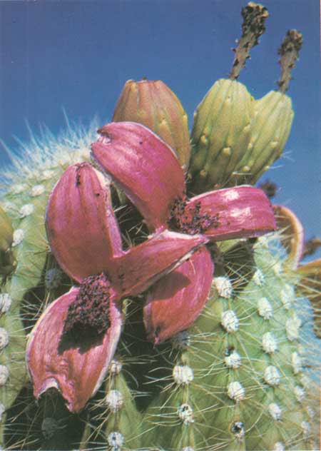 The bright red fruit of saguaro is also a target of consumers. Some species, such as coyotes and cactus wrens, eat the fruit but help to disperse the seeds as they pass through unharmed. But dove and quail guts destroy the seeds. Consult the magisterial works of Steenbergh & Lowe for much more information (1977. Ecology of the saguaro. II. Reproduction, germination, establishment, growth, and survival of the young plant. Scientific Monograph Series 8 and 1983. Ecology of the saguaro. III. Growth and demography. Scientific Monograph Series 17 National Park Service). |